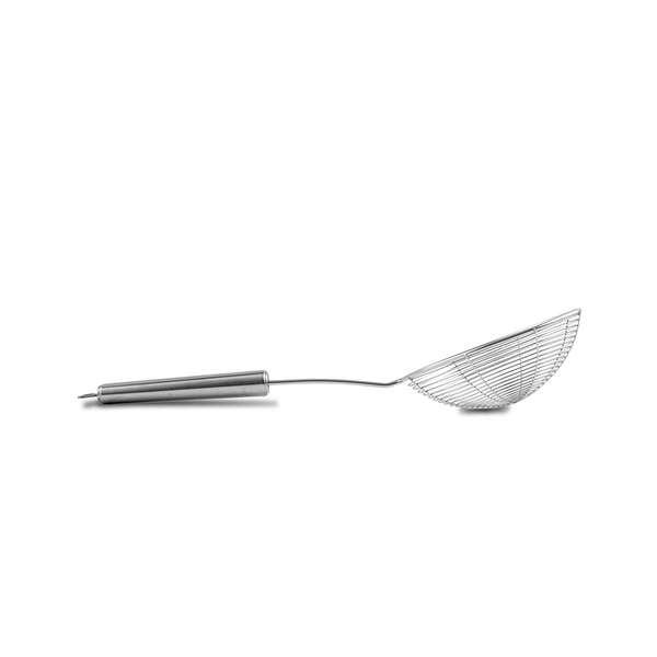 Κατασκευασμένη από ανοξείδωτο ατσάλι 18/8, με εργονομική λαβή για άνετο και ασφαλή χειρισμό. Η πρακτική οπή στην άκρη της, σας δίνει τη δυνατότητα να την κρεμάτε, ενώ οι σχισμές στην επιφάνεια της κουτάλας επιτρέπουν την στράγγιση του φαγητού από το νερό ή το λάδι μαγειρέματος.