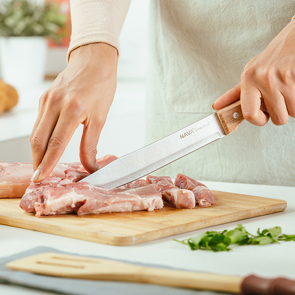 Tο μαχαίρι Butcher Terrestrial της NAVA έχει στενή, κυρτή και μυτερή λεπίδα και είναι ιδανικό για κόψετε το νωπό κρέας σε μικρότερα κομμάτια ή σε λεπτές φέτες, να τεμαχίσετε σημεία του κρέατος που περιλαμβάνουν χόνδρους ή κόκκαλα, να διαχωρίσετε το δέρμα ή το λίπος από το κρέας. Είναι επίσης κατάλληλο και για καθημερινή χρήση και εξίσου αποτελεσματικό για τον τεμαχισμό φρούτων ή λαχανικών με παχύ φλοιό, όπως ο ανανάς ή το πεπόνι.