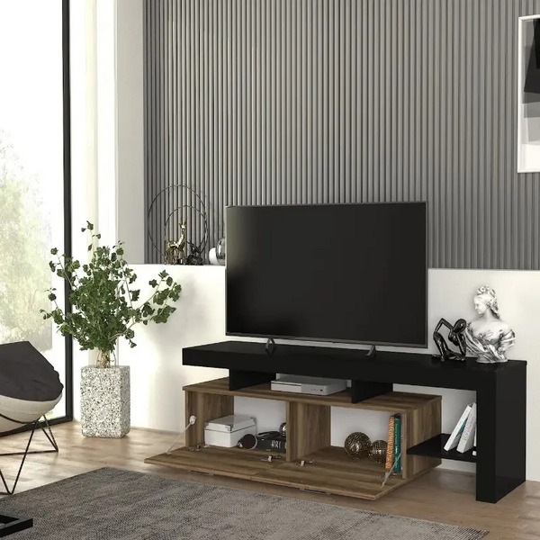 Έπιπλο τηλεόρασης Acnes Megapap χρώμα μαύρο – καρυδί 160x40x53εκ.