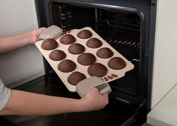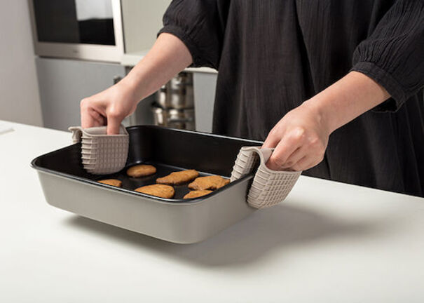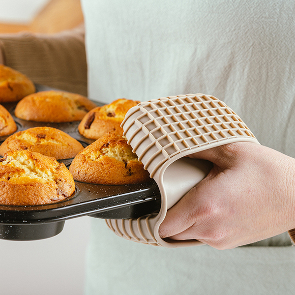 Με ειδική, ανάγλυφη, αντιολισθητική επιφάνεια, κατασκευασμένο από μαλακή, εύκαμπτη σιλικόνη υψηλής ποιότητας, ανθεκτική στις υψηλές θερμοκρασίες και με πρακτική θηλιά στην άκρη του για να το κρεμάτε.