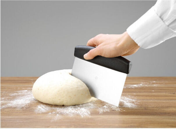 Σπάτουλα για το γρήγορο και άνετο κόψιμο ζύμης από ανοιξείδωτο ατσάλι και εργονομική λαβή. Κατάλληλη για πλύσιμο στο πλυντήριο πιάτων.