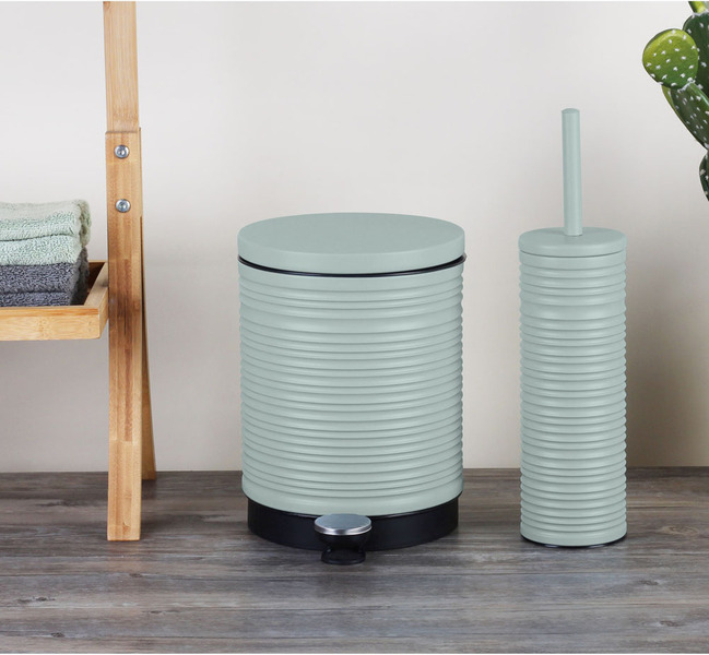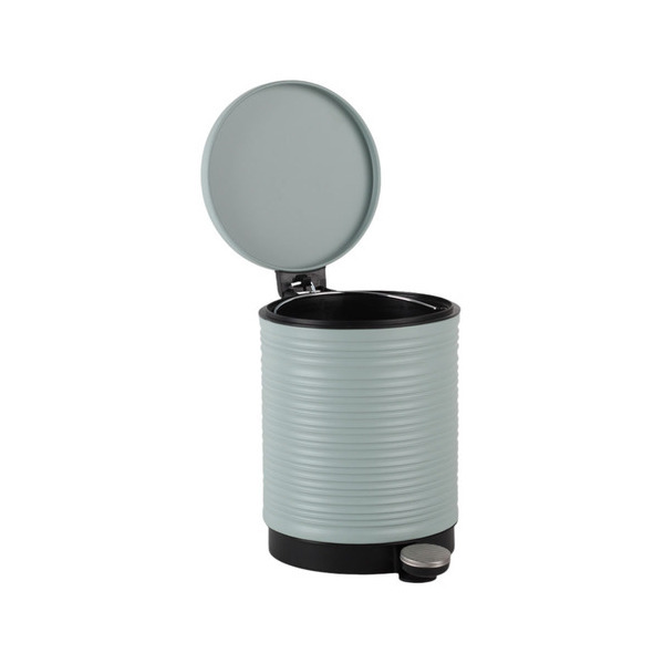 Κάδος απορριμμάτων μεταλλικός, στρογγυλός, στο χρώμα της μέντας με ματ φινίρισμα, ανάγλυφη ριγέ υφή και καπάκι με αυτόματο κλείσιμο. Πεντάλ υψηλής αντοχής, με σύστημα ανοίγματος με το πόδι και αφαιρούμενο εσωτερικό κάδο με χειρολαβή για εύκολο καθάρισμα.