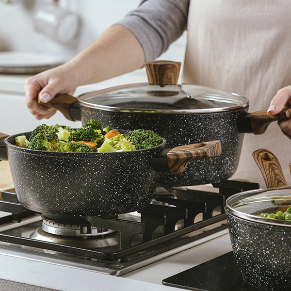 Εξαιρετικής ποιότητας μαγειρικά σκεύη NATURE από αλουμίνιο, με 5 αντικολλητικές επιστρώσεις stone.