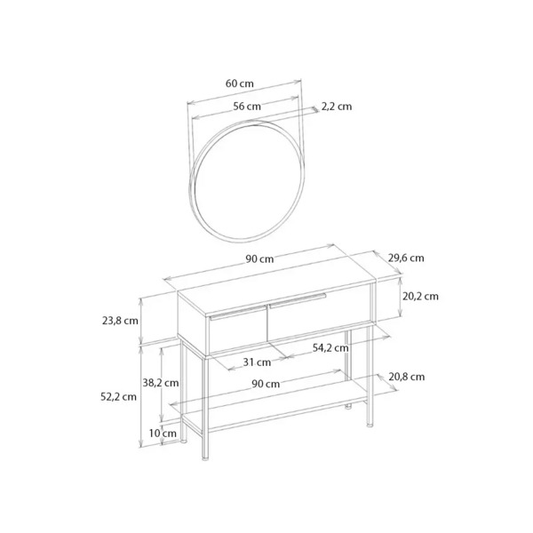 • Διαστάσεις: Μήκος 90 x Βάθος 29,6 x Ύψος 76 εκ.