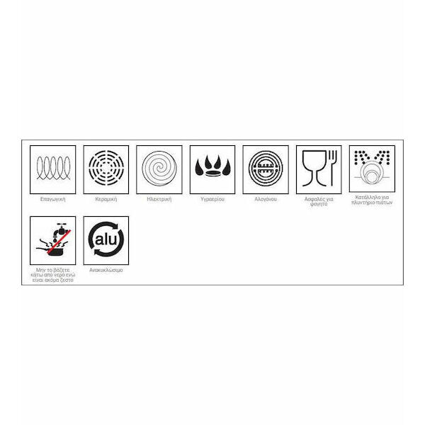 Κατάλληλη για όλες τις εστίες: Η ομελετιέρα είναι κατάλληλη για επαγωγικές, κεραμικές, ηλεκτρικές, υγραερίου και αλογόνου εστίες, προσφέροντας ευελιξία στη χρήση.