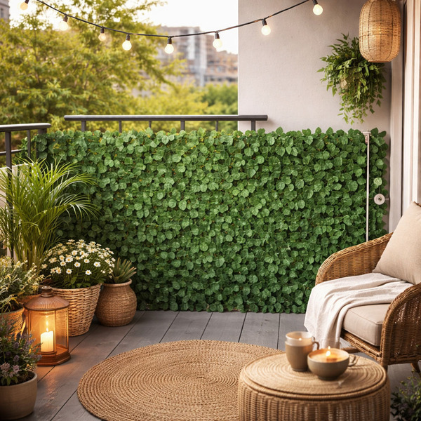 Διακοσμητική φυλλωσιά σε ρολό από ανθεκτικό πλαστικό υλικό, με 288 φύλλα ανά τ.μ. Ιδανική για κάλυψη κάγκελων, φρακτών ή τοίχων, προσφέρει ιδιωτικότητα και φυσική όψη. Κατάλληλη για εξωτερικούς χώρους, ανθεκτική στον ήλιο και στις καιρικές συνθήκες.