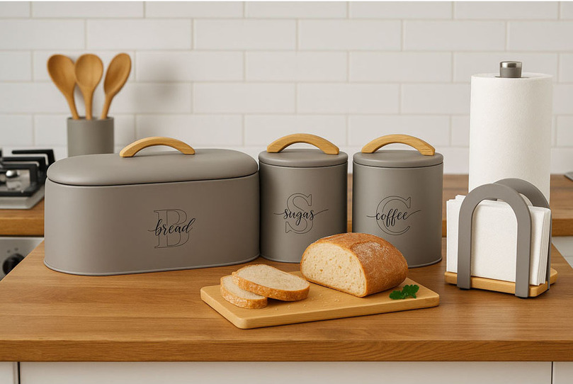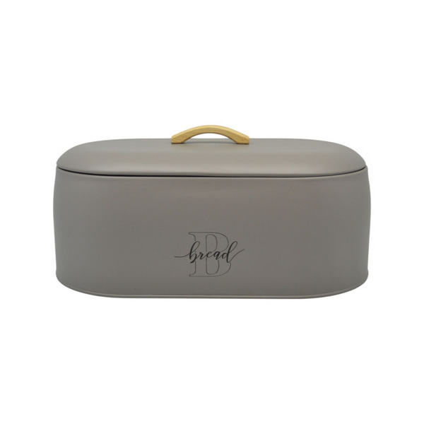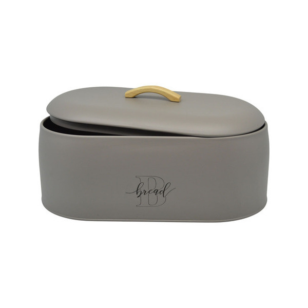 Μεταλλική ψωμιέρα σε taupe ματ χρώμα με ξύλινη χειρολαβή και διακριτική επιγραφή Bread. Ιδανική για την αποθήκευση ψωμιού και αρτοσκευασμάτων, τα διατηρεί φρέσκα, προστατεύοντάς τα από την υγρασία.