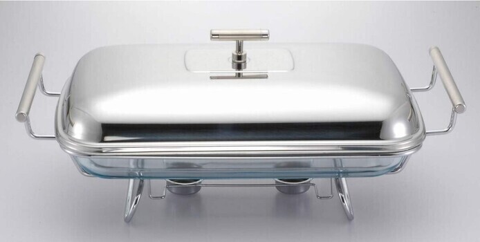 Με ενσωματωμένο γυάλινο σκεύος πυράντοχο για το ψήσιμο και το σερβίρισμα, λειτουργεί με τη χρήση δύο ρεσώ στο κάτω μέρος για να διατηρεί αρκετή ώρα το φαγητό ζεστό.