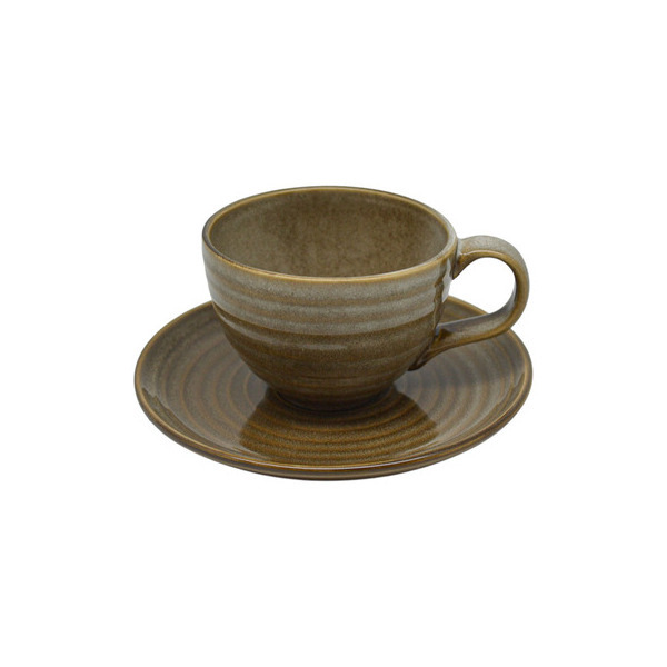 Σετ 6 φλυτζανιών καφέ με πιατάκι, κεραμικά, σε γήινη καφέ απόχρωση. Το ελαφρώς κυματιστό σχέδιο στην επιφάνεια χαρίζει φυσική, χειροποίητη αισθητική και διακριτική κομψότητα. Ιδανικά για καφέ ή άλλα ροφήματα, συνδυάζουν στυλ και πρακτικότητα.