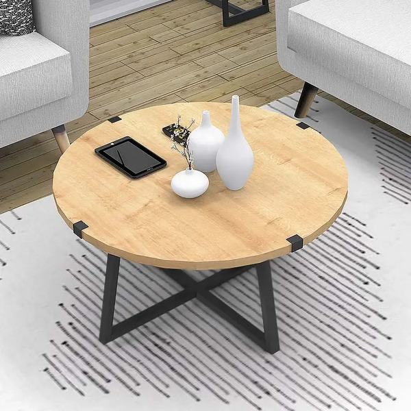 Τραπεζάκι σαλονιού Mauricio Megapap μεταλλικό – μελαμίνης χρώμα φυσικό οξιάς – ανθρακί 78x78x43εκ.
