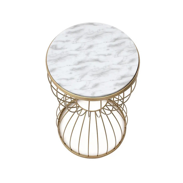 ΤΡΑΠΕΖΑΚΙ ΒΟΗΘΗΤΙΚΟ ΜΕΤΑΛΛΙΚΟ-Mdf 35x35x58εκ. Pino Megapap ΧΡΥΣΟ-ΛΕΥΚΟ ΜΕ ΕΦΕ ΜΑΡΜΑΡΟΥ GP030-0040,2