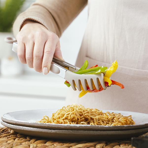 Τσιμπίδα σιλικόνης Misty της NAVA. Απαραίτητο εργαλείο για το σερβίρισμα αλλά και για το εύκολο και ασφαλές γύρισμα του κρέατος στο φούρνο ή το τηγάνι. Κατάλληλη για σερβίρισμα ζυμαρικών.