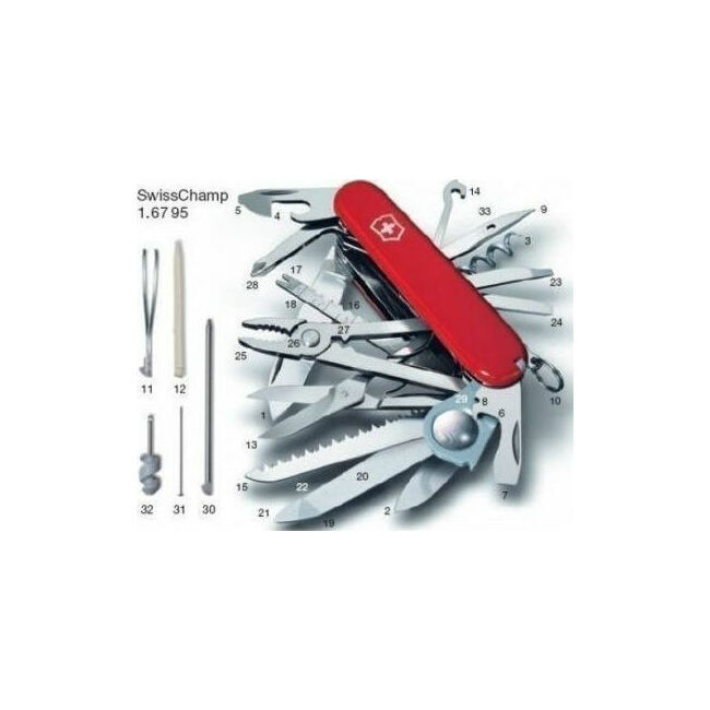 Όταν ακούτε τις λέξεις Swiss Army Knive, το πιο πιθανό είναι να σκεφτείτε τον θρυλικό ελβετικό σουγιά. Και αυτός ο θρύλος συνεχίζεται με τον σουγιά Swiss Champ. Είναι ο απόλυτος σουγιάς, ενσωματώνοντας 33 ολόκληρες λειτουργίες και αμέτρητες δυνατότητες. Όπου κι αν βρίσκεστε και οτιδήποτε κι αν συμβεί, αν μπορεί να επιδιορθωθεί, μπορεί να επιδιορθωθεί με τον Swiss Champ.